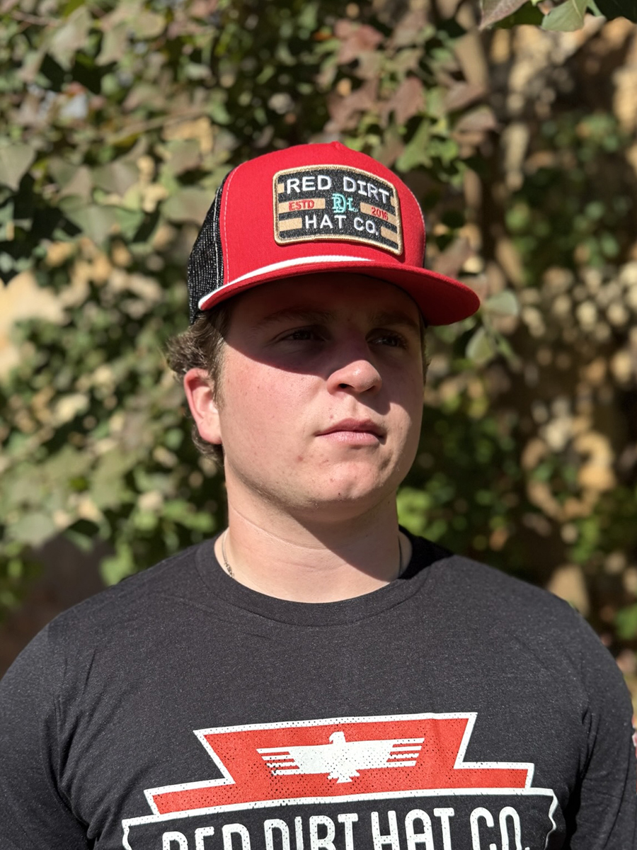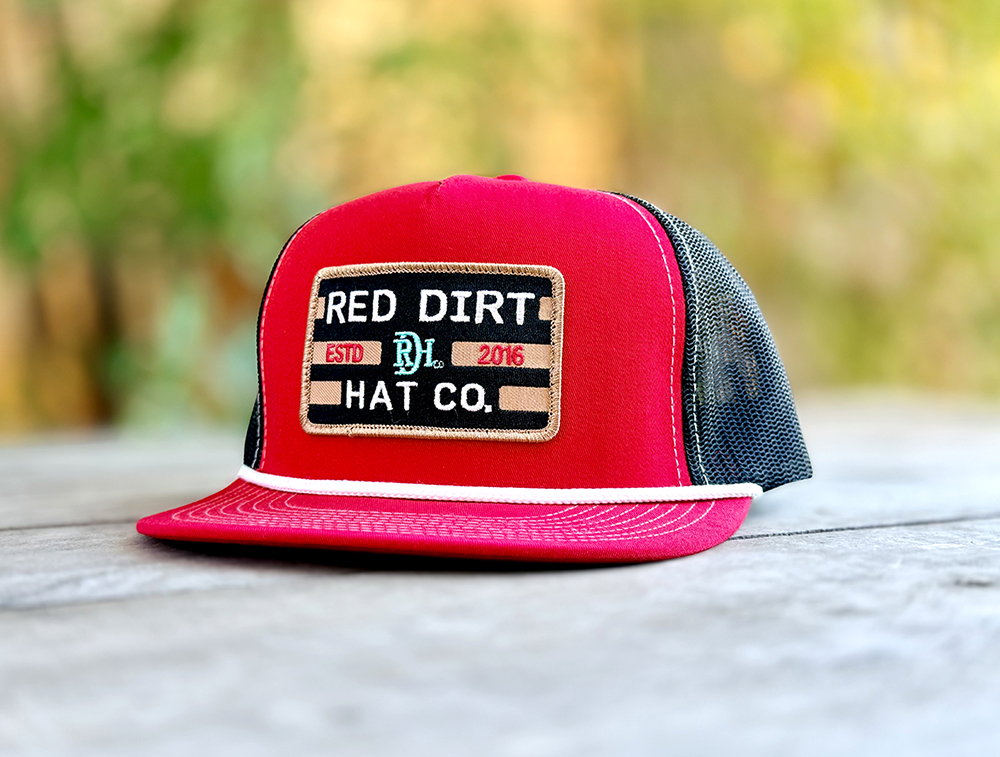 Description: Red/Black with white rope classic 5 panel flat bill style snapback cap featuring “Big Britches” patch.