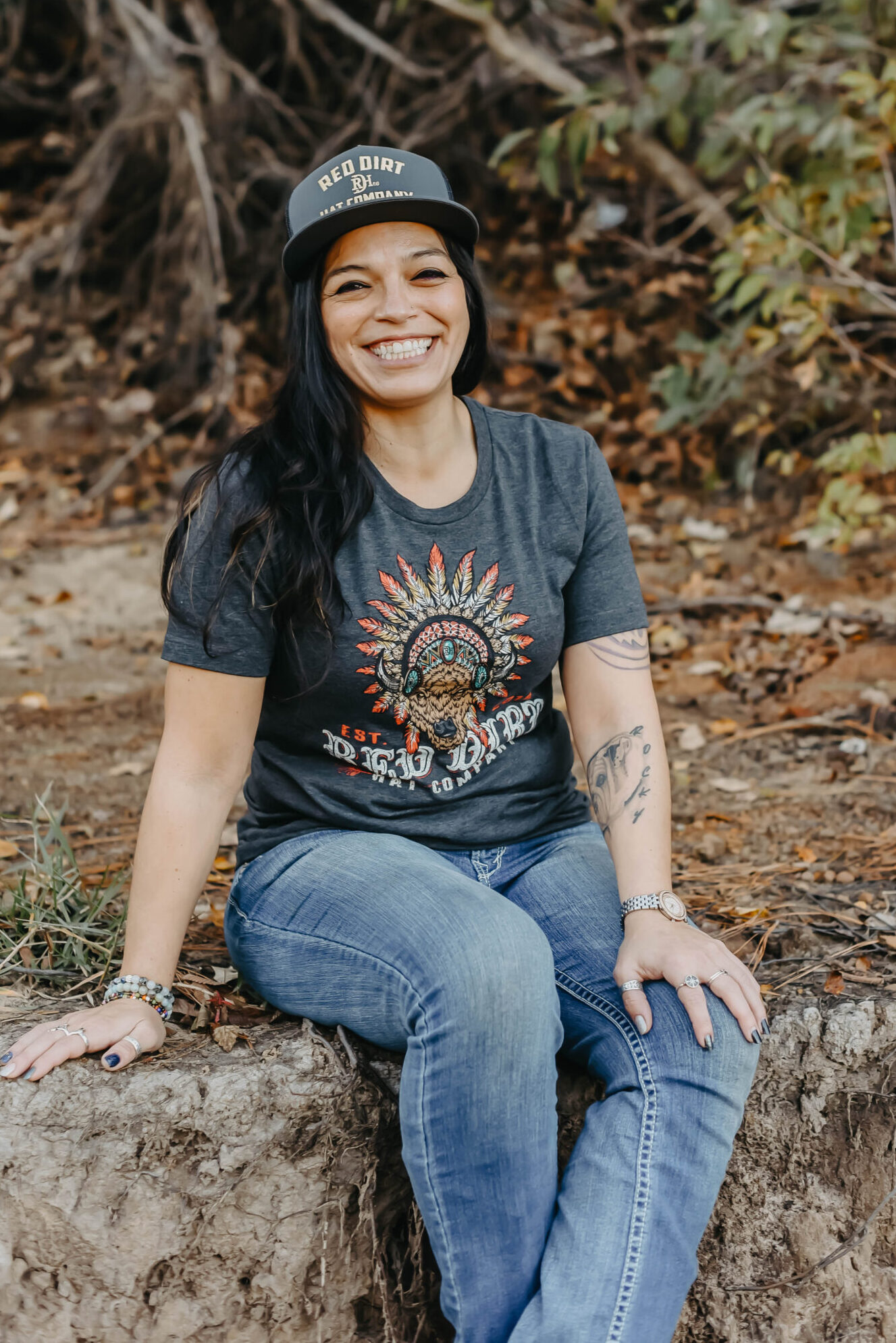 Unisex heather grey t-shirt featuring the exclusive “Buffalo Headdress” design, as well as the signature RDH brand centered on the sleeve.