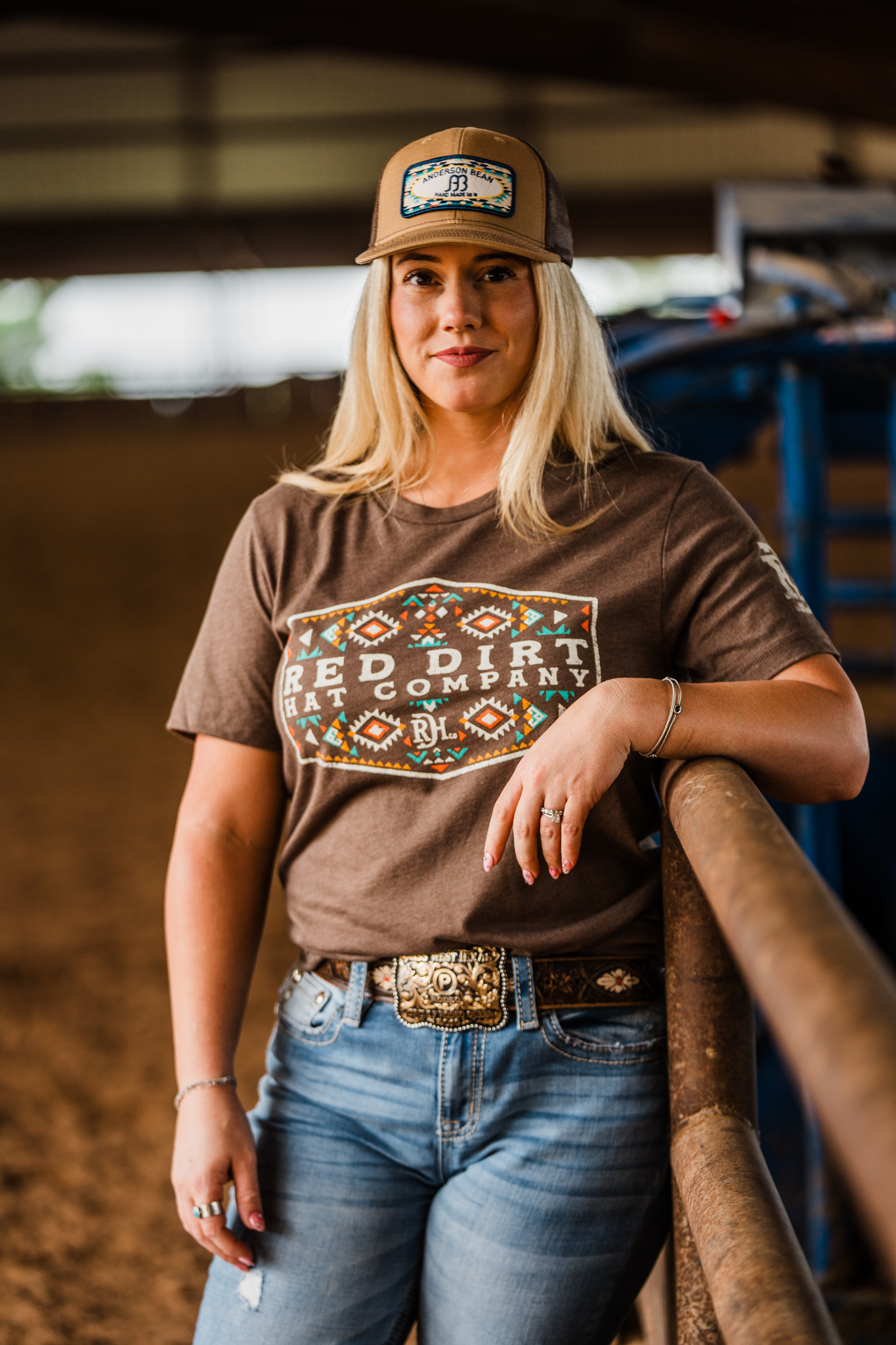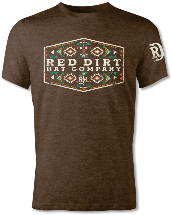 Unisex heather brown t-shirt featuring the exclusive “Cowboy Aztec” design, as well as the signature RDH brand centered on the sleeve.