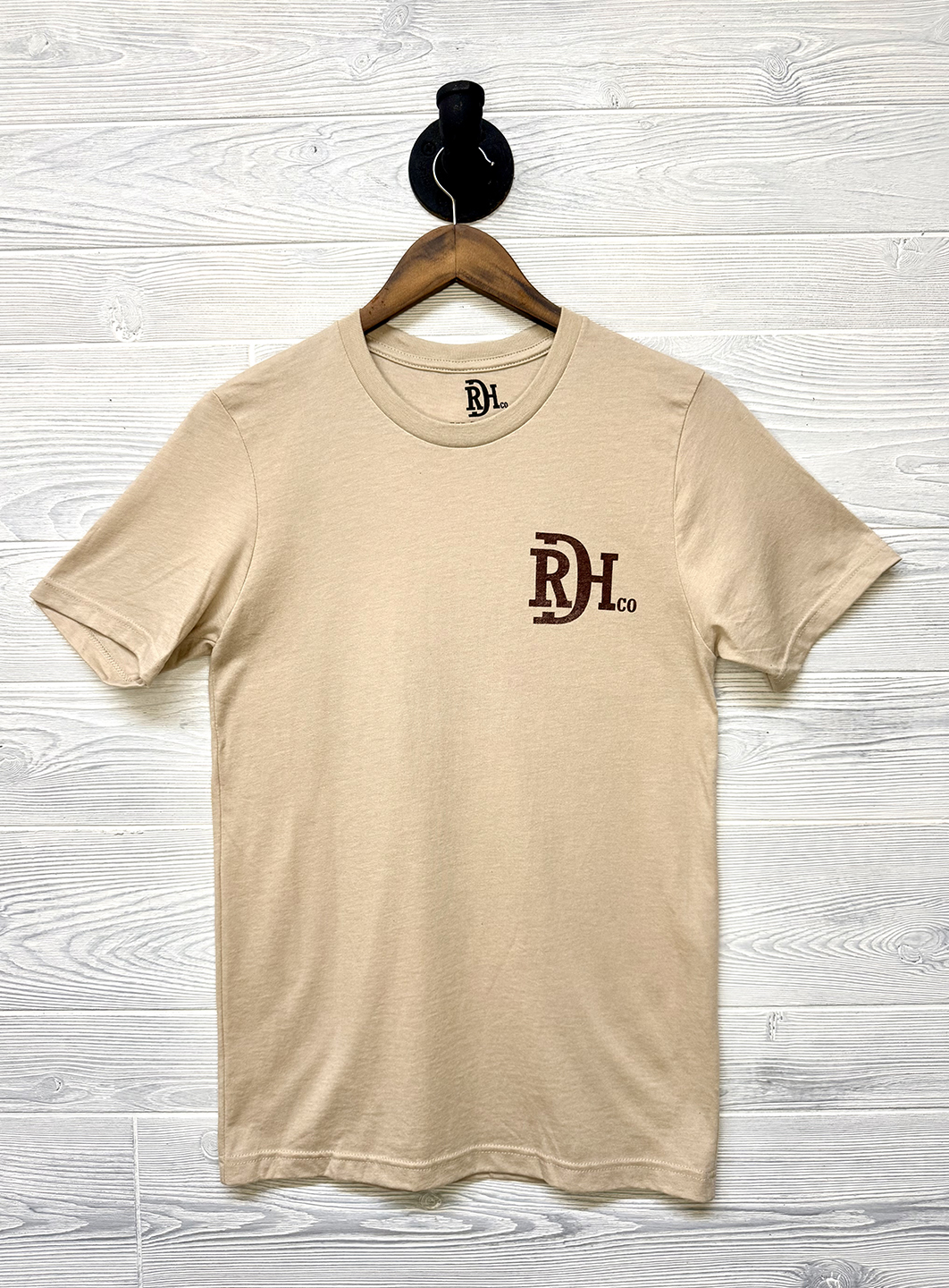 Unisex heather tan t-shirt featuring the exclusive “Keep Roamin’” design on the back, as well as the signature RDH brand on the front.