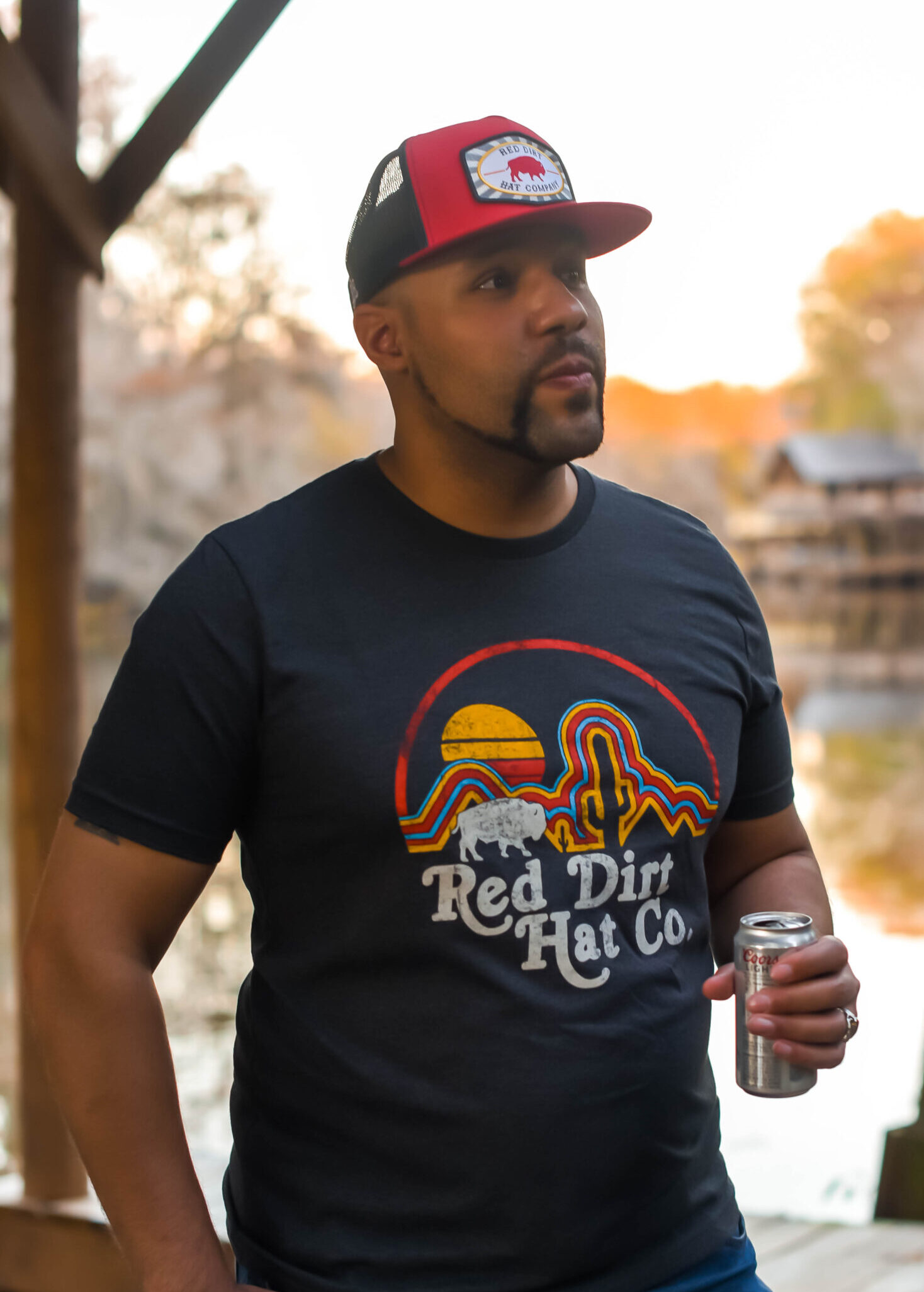 Unisex heather charcoal t-shirt featuring the exclusive “Neon Buffalo” design, as well as the signature RDH brand centered on the sleeve.