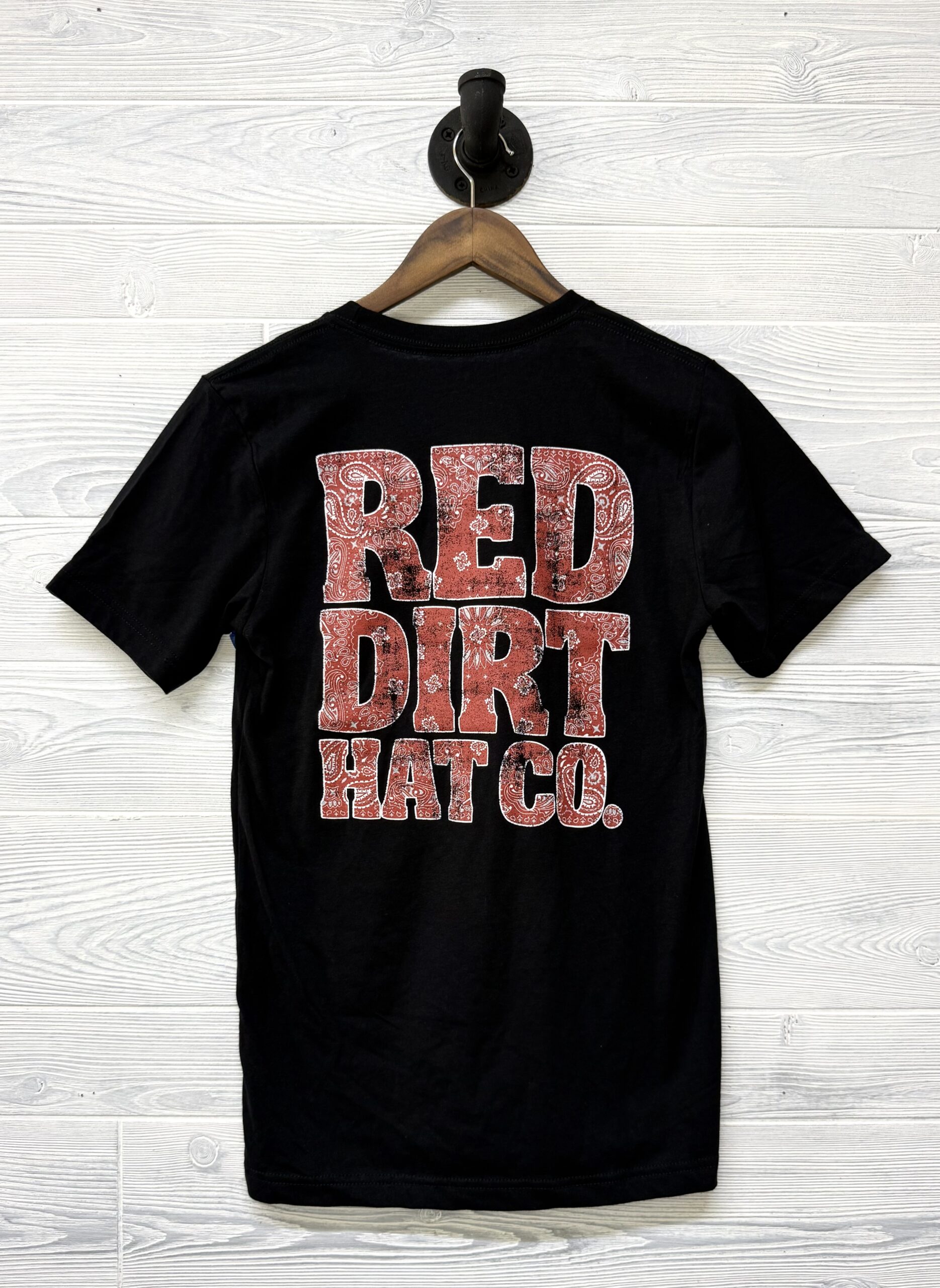 Unisex solid black blend t-shirt featuring the exclusive “Paisley” design on the front, as well as the signature RDH brand on the sleeve.