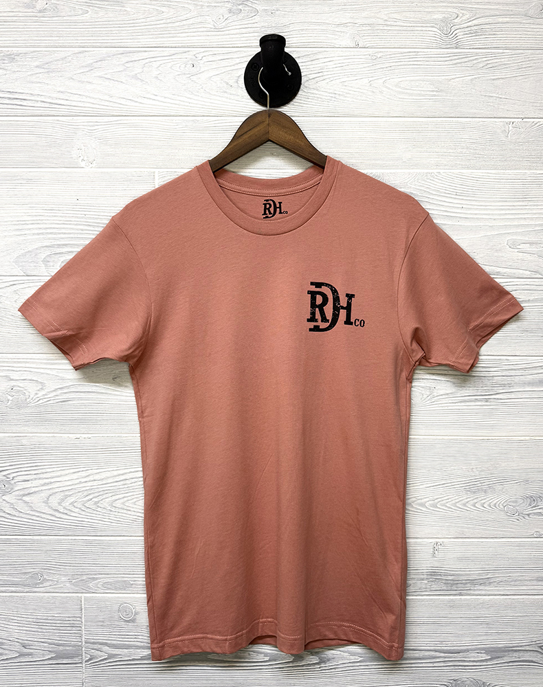 Unisex dusty rose t-shirt featuring the exclusive “Prickly Pear” design on the back, as well as the signature RDH brand on the front.