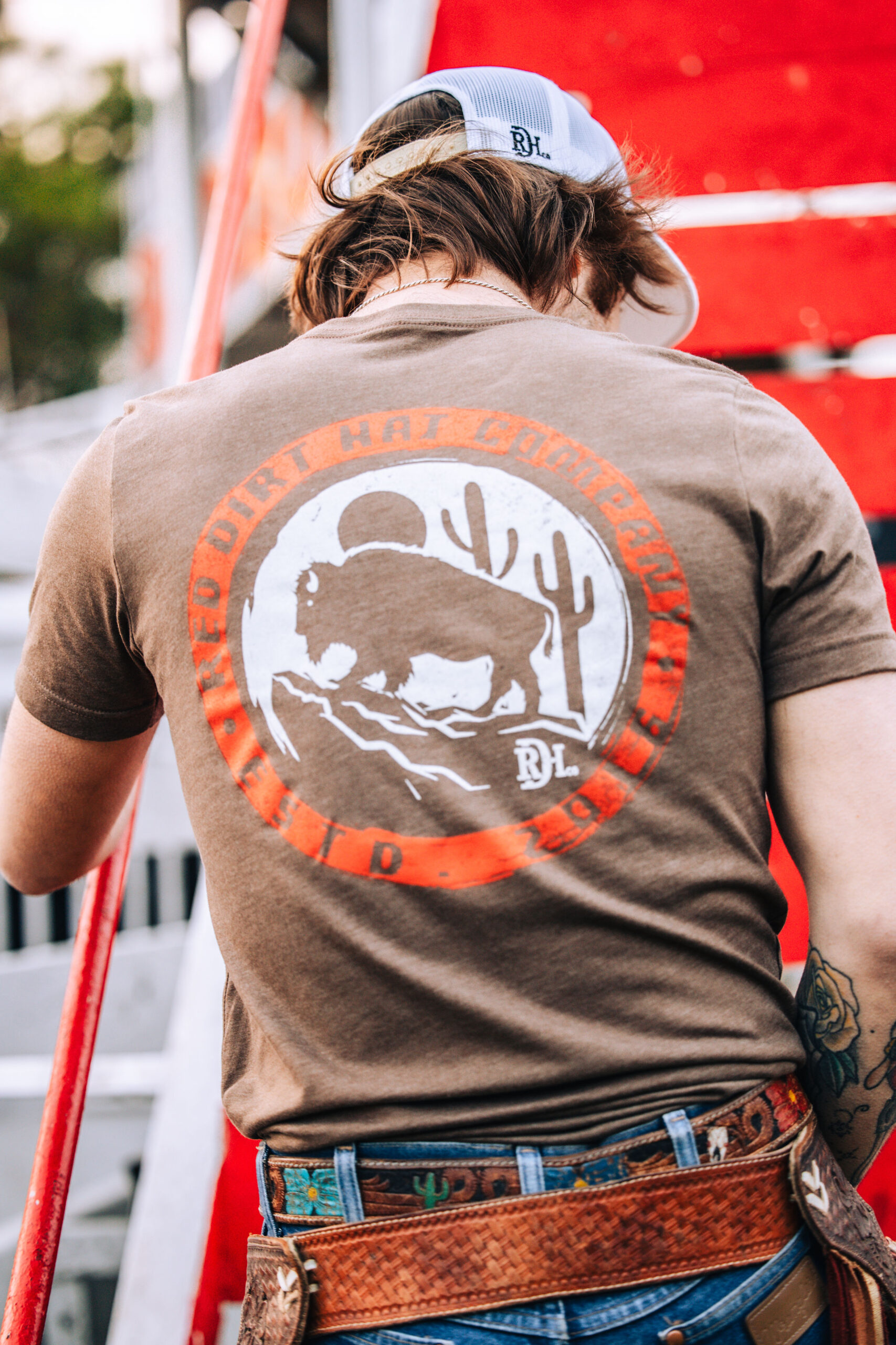 Unisex heather brown t-shirt featuring the exclusive “Rugged Terrain” design on the back, as well as the signature RDH brand on the front left.