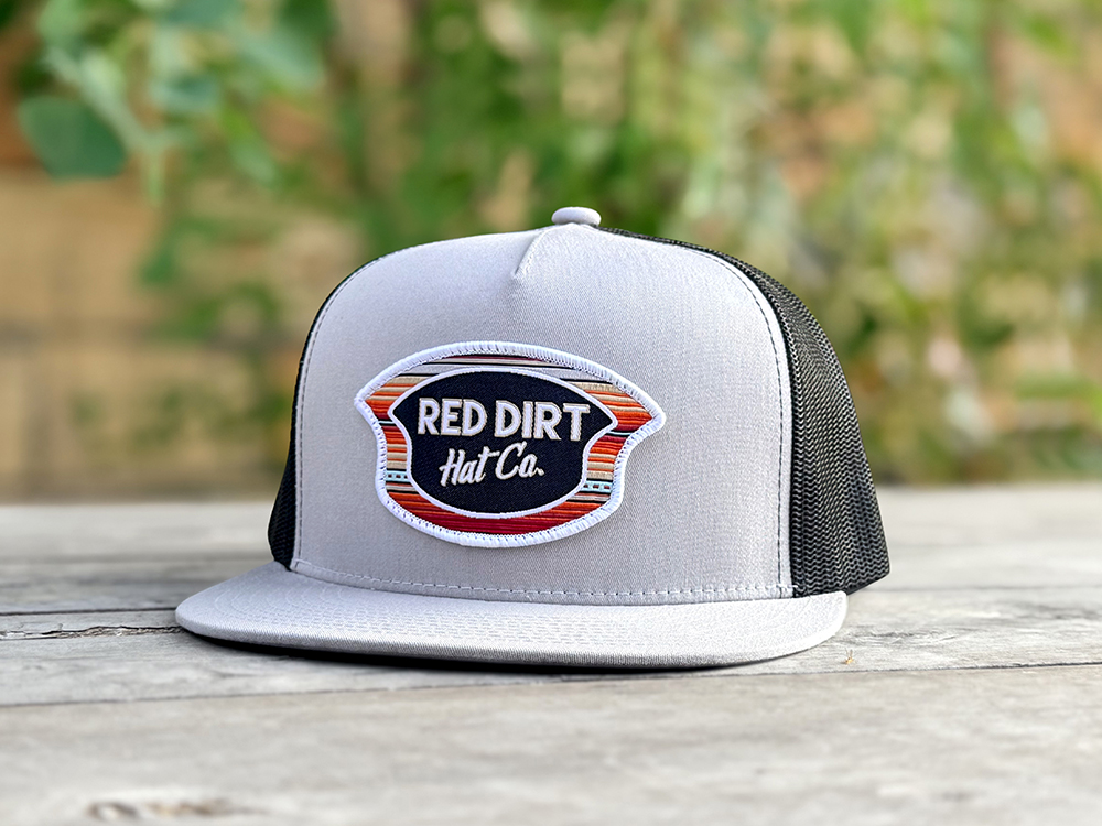 Description: Silver/black classic 5 panel flat bill style snapback cap featuring “Saddle Pad” patch.