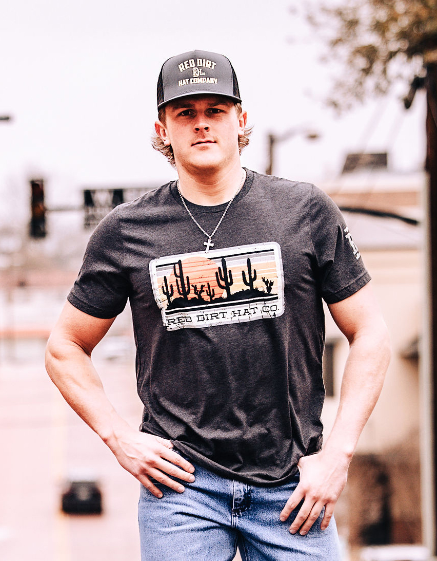 Unisex dark heather grey t-shirt featuring the exclusive “Striped Sunset” design, as well as the signature RDH brand centered on the sleeve.