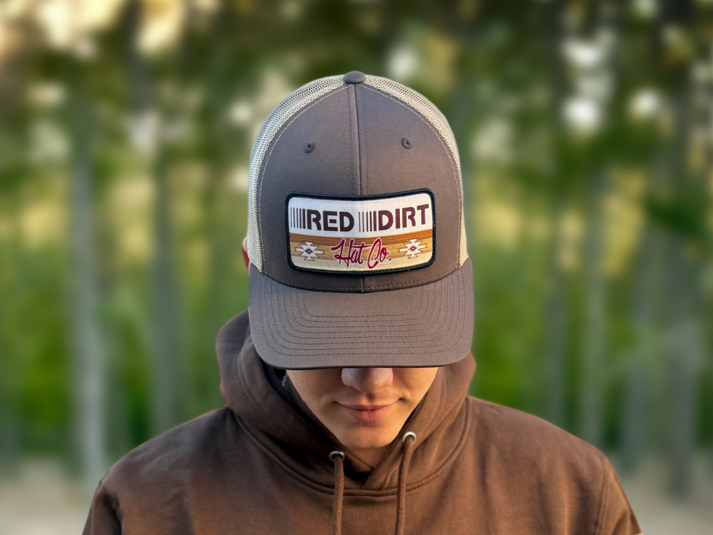 Description: Brown/Khaki classic 6 panel curved bill style snapback cap featuring “Trailblazer” patch.